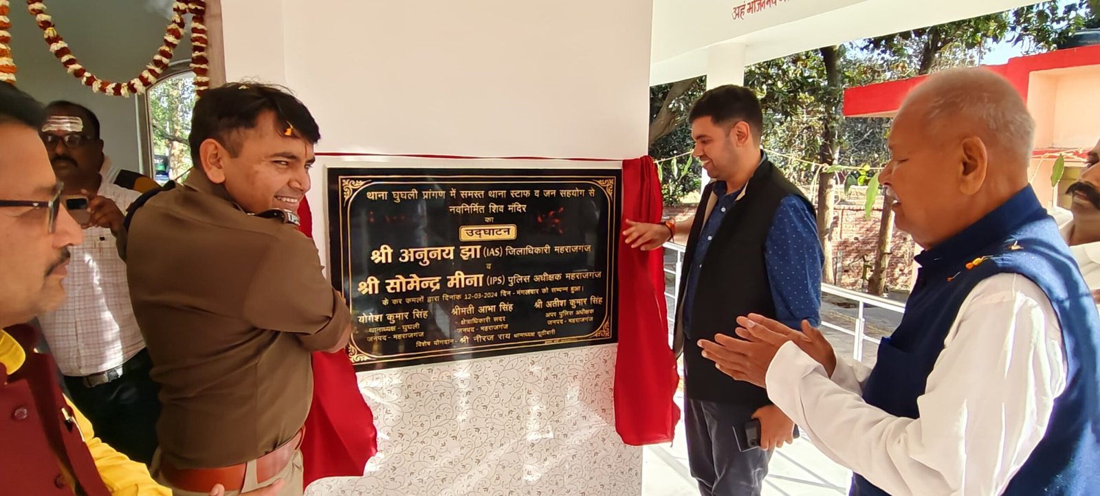 महराजगंज(हर्षोदय टाइम्स) ! जिलाधिकारी श्री अनुनय झा और पुलिस अधीक्षक श्री सोमेंद्र मीणा द्वारा घुघली थाना परिसर में नवनिर्मित शिव मंदिर का उद्घाटन किया गया।