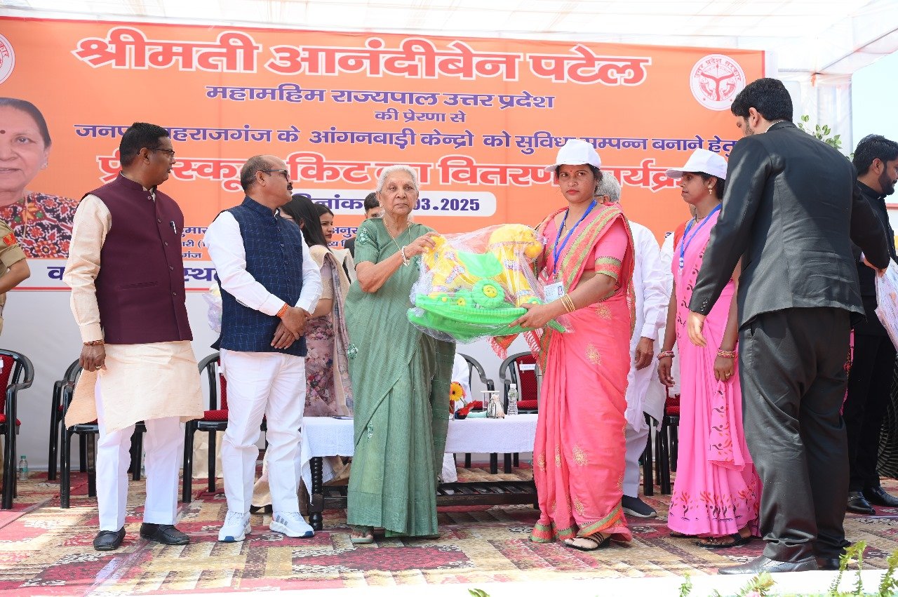 इसके उपरांत उनके द्वारा जनपद के 10 आंगनबाड़ी केंद्रों को प्री स्कूल शैक्षणिक किट का वितरण किया गया। उक्त किट को भारतीय स्टेट बैंक, पंजाब नेशनल बैंक, बैंक ऑफ बड़ौदा, बैंक ऑफ इंडिया, इंडियन बैंक, एक्सिस बैंक, बड़ौदा उप्र ग्रामीण बैंक सहित विभिन्न बैंकों के सहयोग से जनपद के 200 आंगनबाड़ी केंद्रों को प्रदान किया जा रहा है। साथ ही 220 नवीन चयनित आंगनबाड़ी कार्यकत्रियों में 10 आंगनबाड़ी कार्यकत्रियों को नियुक्ति पत्र भी प्रदान किया गया। इसके अतिरिक्त 70 वर्ष से अधिक आयु के पात्र 05 व्यक्तियों को आयुष्मान कार्ड का वितरण, 05 क्षय रोगियों को पोषण पोटली/किट का वितरण, प्रधानमंत्री आवास योजना-ग्रामीण के अन्तर्गत वनटांगिया ग्रामों के आवास निर्माण हेतु चयनित 05 पात्र व्यक्तियों को स्वीकृति पत्र का वितरण, प्रधानमंत्री आवास योजना-ग्रामीण के अन्तर्गत मूसहर जाति के चयनित 05 पात्र व्यक्तियों को स्वीकृति पत्र का वितरण, प्रधानमंत्री किसान सम्मान निधि योजनान्तर्गत 5 पात्र कृषक को स्वीकृति पत्र/प्रमाण-पत्र का वितरण, 05 कृषको को अनुदान पर कृषि यंत्र का वितरण किया गया। साथ ही बेटी बचाओ, बेटी पढ़ाओ योजना के तहत 05 लाभार्थियों को बेबी किट, 05 किसानों को बीज वितरण, ओडीओपी योजना के तहत 02 लाभार्थियों को टूलकिट व वित्तपोषण सहायत के अंतर्गत 03 लाभार्थियों को रुपए 10.00 लाख के डेमो चेक और पंचायत कल्याण कोष योजना के तहत 02 लाभार्थियों को रुपए 10 लाख की अनुग्रह धनराशि का वितरण राज्यपाल महोदया के कर कमलों से संपन्न हुआ।