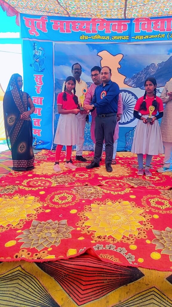 महराजगंज। जनपद के विकास खण्ड पनियरा अंतर्गत ग्राम सभा जड़ार में आज दिनांक 19 मार्च 2025 को पूर्व माध्यमिक /प्राथमिक विद्यालय पर वार्षिकोत्सव समारोह का आयोजन किया गया जिसमें मुख्य अतिथि के रूप में पधारे अभिजीत सिंह पूर्व जिला बेसिक शिक्षा अधिकारी, वरिष्ठ प्रवक्ता डायट महराजगंज, डा0 अरसद जमील डायट प्रवक्ता व खण्ड शिक्षा अधिकारी व कार्यक्रम अध्यक्ष के द्वारा सम्मिलित रूप से मां सरस्वती के चित्र पर माल्यार्पण व दीप प्रज्ज्वलित कर कर किया गया तत्पश्चात सरस्वती वन्दना की प्रस्तुत किया गया ।