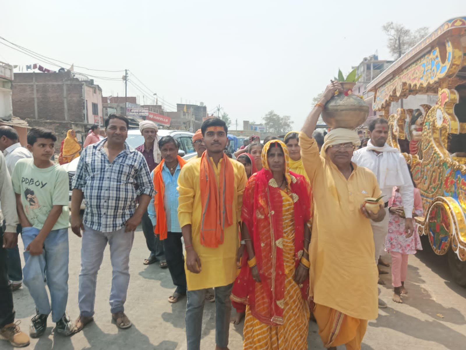 परतावल/महराजगंज- 26/03/2025, बुधवार को परतावल क्षेत्र के ग्राम सभा श्यामदेउरवा में विष्णु महायज्ञ के आयोजन पर भव्य कलश यात्रा निकाली गई। यज्ञ मंडप परिसर से गाजे-बाजे व हाथी घोड़े के साथ निकली इस कलश यात्रा में कन्याएं एवं महिलाओं ने भाग लिया। कलश यात्रा के दौरान श्रद्धालुओं के जयकारे व भजनों से पूरे क्षेत्र का माहौल भक्तिमय हो उठा।