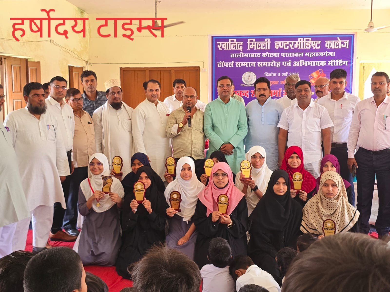 श्यामदेउरवा/महराजगंज :- यूपी बोर्ड की इंटर व हाई स्कूल परीक्षा में प्रथम, द्वितीय व तृतीय स्थान पाने वाले छात्र-छात्राओं को जनपद महराजगंज अंतर्गत परतावल ब्लॉक के कोटवा में स्थित खालिद मिल्ली इंटरमीडिएट कॉलेज द्वारा पुरस्कार देकर सम्मानित किया।