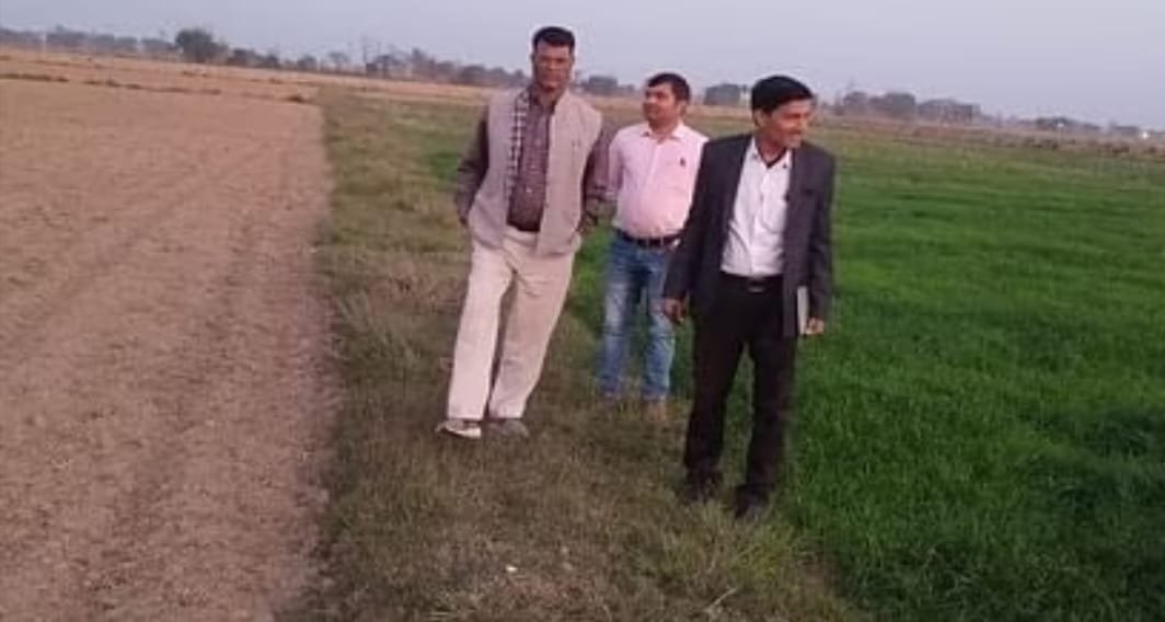 चारा की बुआई को लेकर भूमि का निरीक्षण करते पशु डॉक्टरों की टीम