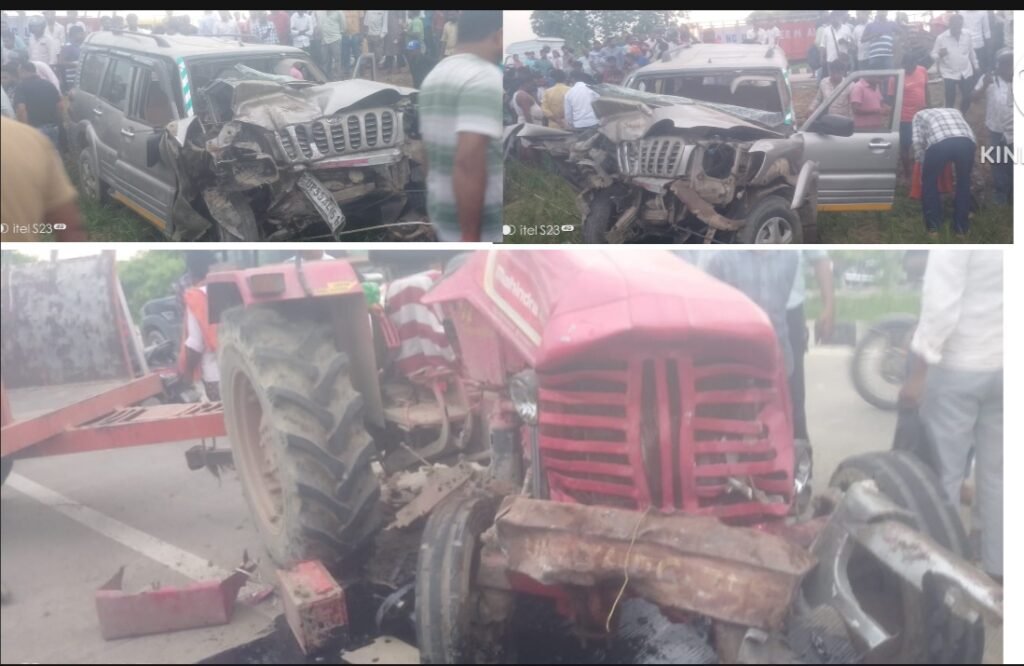 महराजगंज जनपद के श्यामदेउरवा थाना क्षेत्र अंतर्गत ग्राम पंचायत रुद्रपुर भलुहि के पास बुधवार की देर शाम एक दर्दनाक सड़क हादसा हुआ। मालूम हो कि एक स्कॉर्पियो जो गोरखपुर की तरफ जा रही थी उसकी भटहट की तरफ से आ रहे ट्रैक्टर-ट्राली से भिडंत हो गई। इस घटना में चार लोग घायल हो गए। ग्रामीणों की मदद से एंबुलेंस बुलाई गई और तीन घायलों को भटहट के एक निजी अस्पताल में भर्ती कराया गया। वही एक गंभीर रूप से घायल विनोद शर्मा को बीआरडी मेडिकल कॉलेज रेफर किया गया। ट्रैक्टर-ट्राली में सवार इंद्रेश सिंह पुत्र हरिवंश सिंह और विनोद शर्मा पुत्र रामजआवँन शर्मा महराजगंज के श्यामदेउरवा थाना के ग्राम रुद्रपुर भलुहि के निवासी हैं। वही दूसरी तरफ स्कॉर्पियो में सवार असब और आजम चिलबिलवा थाना गुलहरिया जनपद गोरखपुर के निवासी हैं। गुलहसन रामपुर चकिया थाना श्यामदेउरवा का रहने वाला है। सूचना मिलते ही मौके पर पहुंची श्यामदेउरवा पुलिस ने दुर्घटना के कारणों की जांच कर रही है।