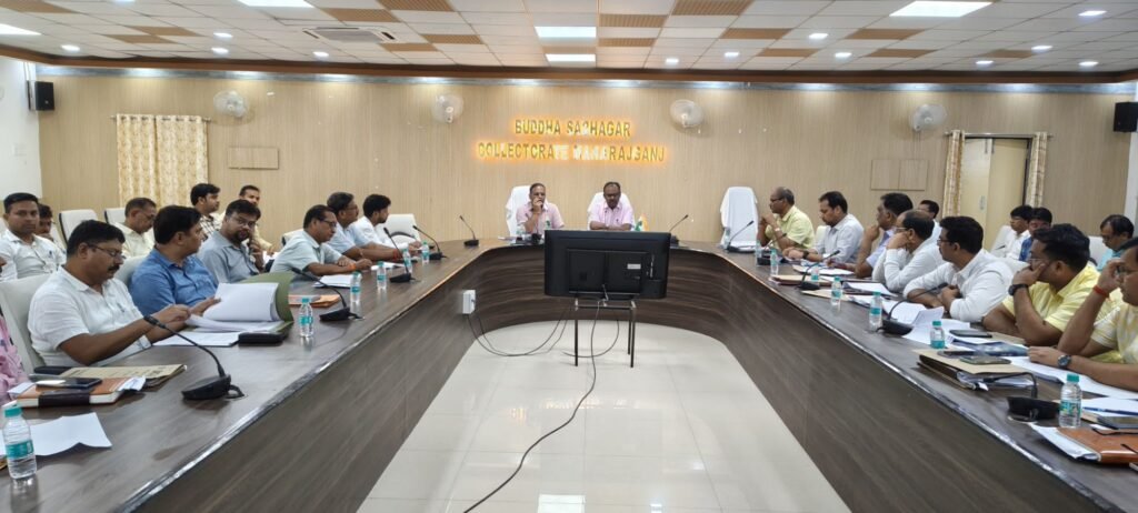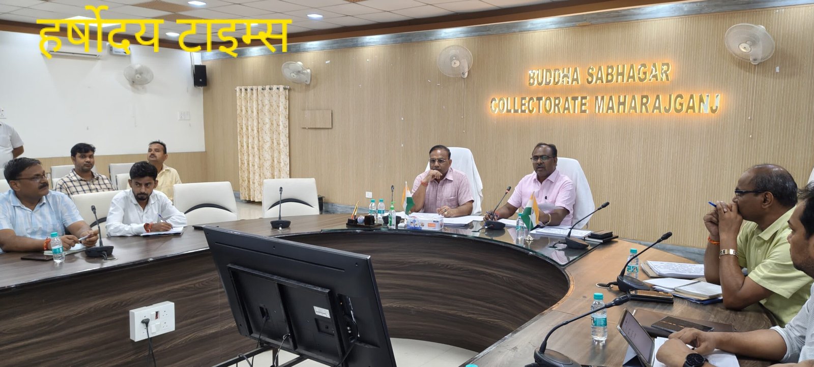 महराजगंज- 16 जुलाई 2025, जिलाधिकारी संतोष कुमार शर्मा की अध्यक्षता में कर करेत्तर, राजस्व संग्रह एवं प्रर्वतन कार्यो की समीक्षा बैठक कलेक्ट्रेट सभागार में की गयी।