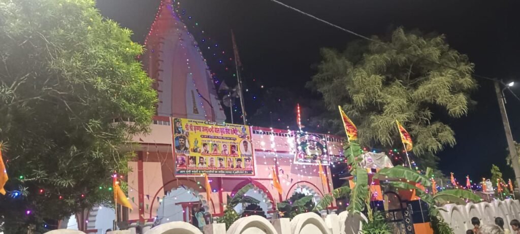 हर वर्ष की भांति इस वर्ष भी श्रीकृष्ण जन्माष्टमी के पावन पर्व पर ग्रामीणों द्वारा प्राचीन शिव मंदिर पर डोल रखकर भगवान श्रीकृष्ण जन्मोत्सव मनाया गया। ग्रामीणों ने बड़ी संख्या में पूजा-अर्चना में भाग लिया। शनिवार शाम से मध्य रात्रि तक मंदिर पर गाँव की माता बहनों ने मंगल गीत गाये। श्रीकृष्ण जन्माष्टमी महापर्व के अवसर पर शनिवार को पूरा नगर भक्ति और श्रद्धा के रंग में सराबोर हो उठा। गाँव के कीर्तन समाज के लोगों द्वारा  “हरे राम हरे राम, राम राम हरे हरे… हरे कृष्ण हरे कृष्ण, कृष्ण कृष्ण हरे हरे” के मधुर संकीर्तन व भक्ति संगीत से नगर गूंजता रहा। रात 12 बजे कृष्ण जन्म के समय जयकारों से पूरा नगर गुजायमान हो उठा। उसके बाद सभी लोगों में प्रसाद वितरण किया गया। भक्तिमय माहौल में लोग झूमते, नाचते और भगवान श्रीकृष्ण के जन्मोत्सव का आनंद लेते नजर आए। यह कार्यक्रम जन्म से लेकर छठीहार यानि 6 दिनों तक चलता रहेगा। छठीहार के दिन विधिवत पूजन-अर्चन के बाद ग्रामीणों द्वारा पुरे गाँव में गाजे बाजे के साथ डोल घुमाया जायेगा और शाम को छठ घाट के समीप स्थित पोखरे में विसर्जन के उपरांत कार्यक्रम का समापन किया जायेगा। इस दिन शिव मंदिर पर मेला भी लगता है।