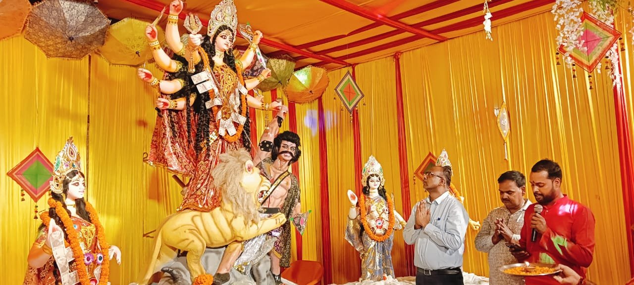 महराजगंज। जिलाधिकारी संतोष कुमार शर्मा ने सोमवार को कोतवाली क्षेत्र स्थित रामजानकी मंदिर परिसर में स्थापित दुर्गा प्रतिमा का पूजन-अर्चन किया। इस दौरान उन्होंने पूरे परिसर का निरीक्षण कर सुरक्षा, स्वच्छता और बिजली व्यवस्था का जायजा लिया।