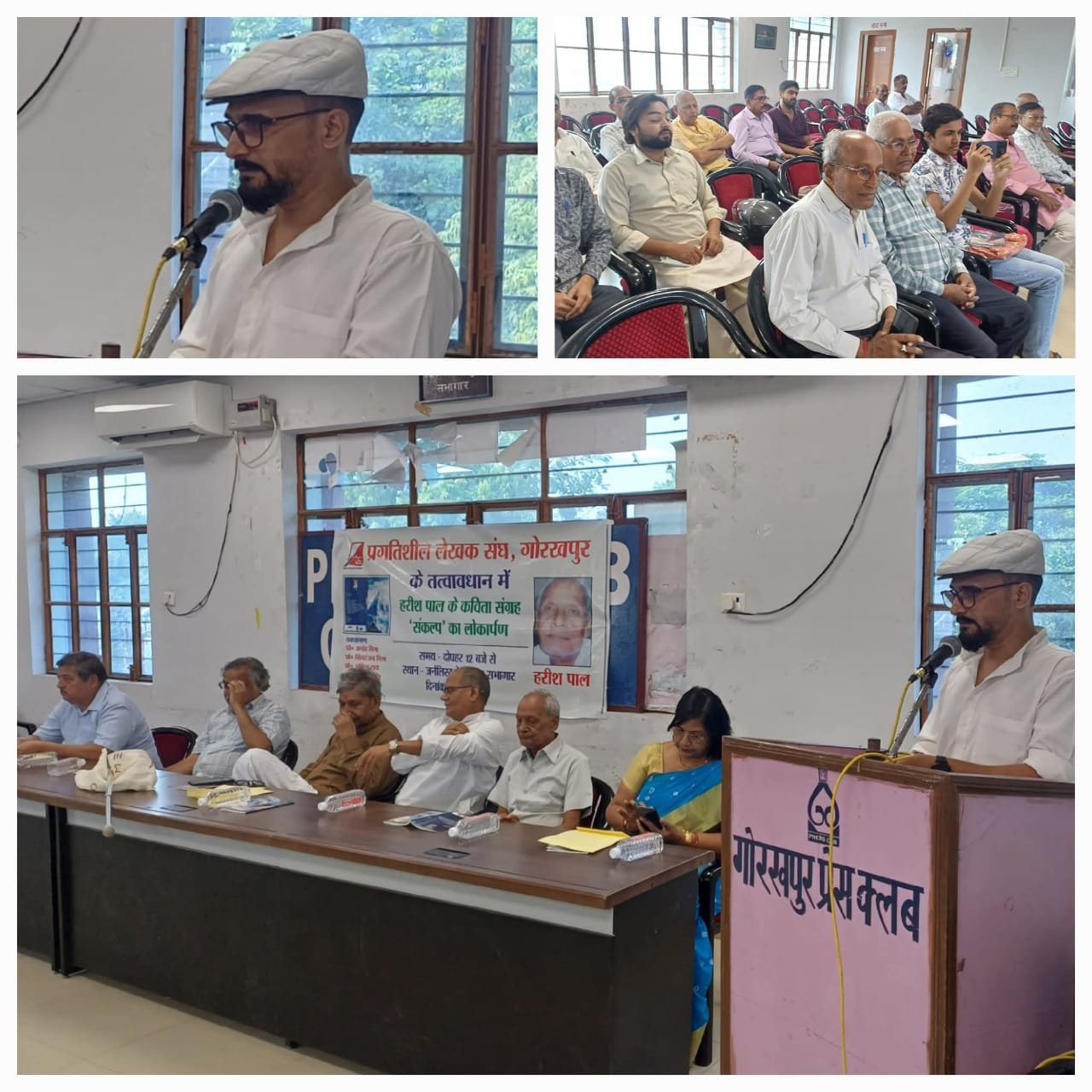 गोरखपुर (हर्षोदय टाइम्स)। प्रगतिशील लेखक संघ के तत्वावधान में वरिष्ठ पत्रकार कवि हरीश पाल जी के कविता संग्रह ‘संकल्प ‘ का लोकार्पण जर्नलिस्ट प्रेस क्लब के सभागार में सम्पन्न हुआ l