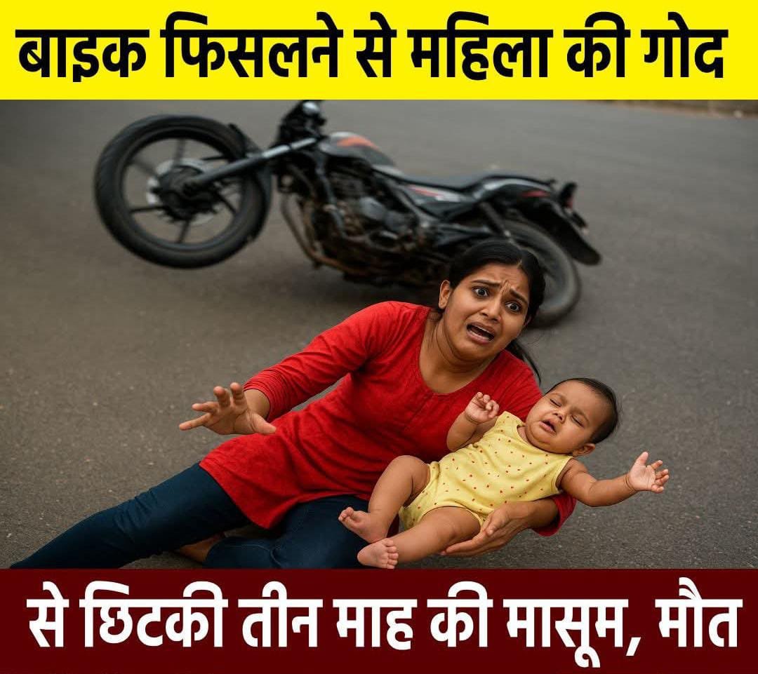 जानकारी के अनुसार, पडरौना कोतवाली क्षेत्र निवासी चंद्रशेखर अपनी पत्नी और तीन माह की बेटी कृति के साथ नेबुआ नौरंगिया थाना क्षेत्र के चंदन बरवा मंगलवार सुबह ससुराल जा रहा था। उसी दौरान बारिश के बीच रायपुर देवतहा मार्ग पर बाइक का पहिया फिसल गया और मां की गोद से छींटककर बच्ची जमीन पर गिर गई।