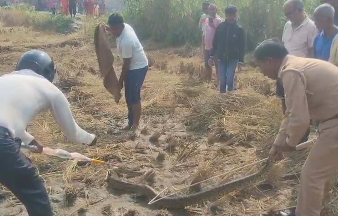 परतावल/महाराजगंज। नगर पंचायत परतावल के वार्ड नंबर 8 छत्रपति शिवाजी नगर में शनिवार की सुबह उस समय हड़कंप मच गया जब स्थानीय निवासी काशी गुप्ता के खेत में अचानक एक विशालकाय अजगर दिखाई दिया। खेत में लिपटे इस अजगर को देख ग्रामीणों में अफरा-तफरी मच गई और कुछ देर के लिए मौके पर भीड़ जुट गई।