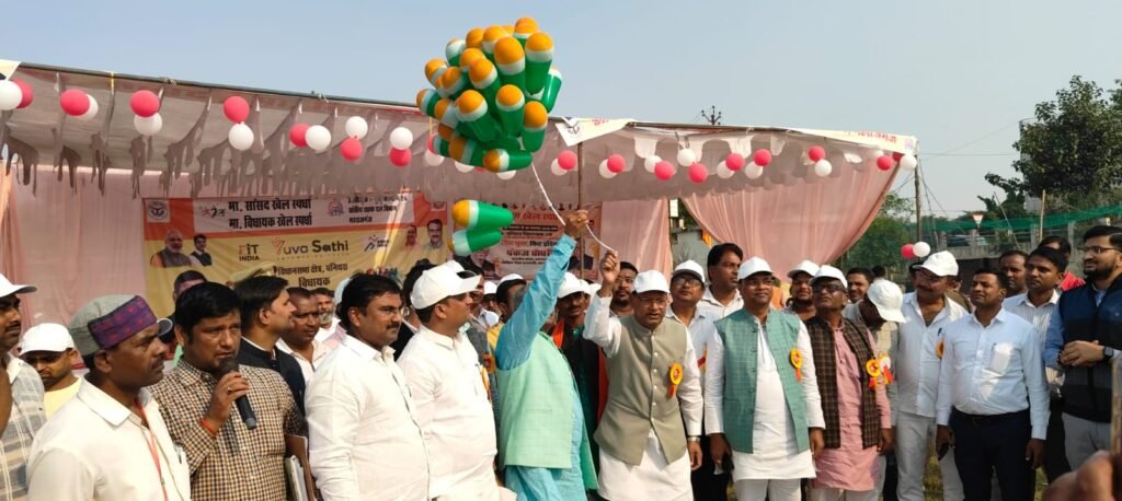 महराजगंज। युवा कल्याण विभाग एवं प्रांतीय रक्षक दल विभाग के संयुक्त तत्वावधान में पनियरा विधानसभा क्षेत्र के महंत अवैद्यनाथ मिनी स्टेडियम श्यामदेउरवा में सोमवार को सांसद-विधायक खेल स्पर्धा का गरिमामय आगाज हुआ। कार्यक्रम का शुभारंभ केंद्रीय वित्त राज्य मंत्री पंकज चौधरी ने तिरंगे गुब्बारे को आकाश में छोड़कर किया। इस दौरान स्टेडियम जयघोष और तालियों से गूंज उठा।