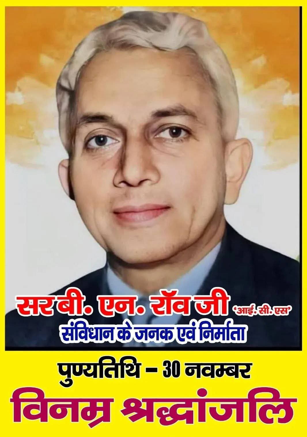 बी एन राव साहब को सन 1946 ई0 में भारतीय संविधान सभा का संवैधानिक सलाहकार नियुक्त किया गया था। उन्होंने भारतीय संविधान का प्रथम मसौदा तैयार किया था। मौलिक अधिकार को न्याय संगत और गैर न्याय संगत में विभाजन की सिफारिश किया था जिसे संविधान सभा ने स्वीकार कर लिया था। मार्च 1948 से 1950 तक अंतर्राष्ट्रीय न्यायालय का न्यायाधीश बनाया गया था। 1950 से 5 जून 1952 तक संयुक्त राष्ट्र सुरक्षा परिषद में भारत के प्रतिनिधि रहे। भारतीय संविधान को मूर्त रूप देने वाले इस महापुरुष को भुला दिया गया और वोट की राजनीति के चलते इतिहास की सच्चाई को छिपाया गया।