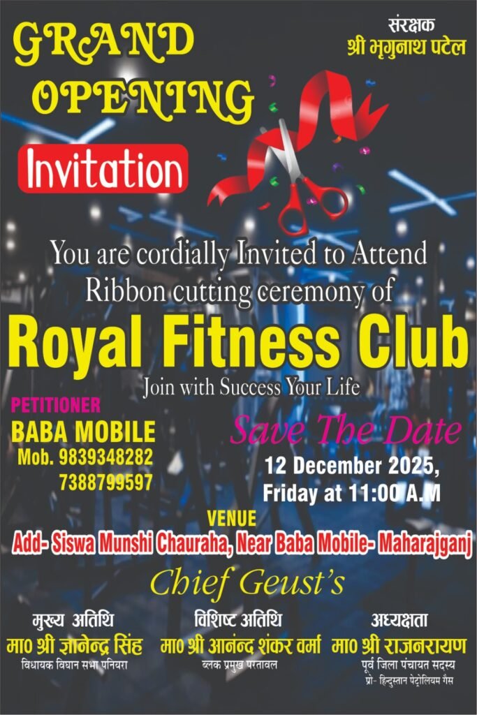 भिटौली/महाराजगंज। सिसवा मुंशी चौराहे पर शुक्रवार को रॉयल फिटनेस क्लब जिम का भव्य उद्घाटन हुआ। युवा भाजपा नेता प्रेम शंकर उर्फ निर्भय सिंह तथा ब्लॉक प्रमुख परतावल आनंद शंकर वर्मा ने संयुक्त रूप से फीता काटकर जिम का शुभारंभ किया।