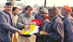 मकर संक्रांति पर्व पर गन्ना यार्ड में खिचड़ी प्रसाद वितरण, किसानों को बांटे गए कंबल