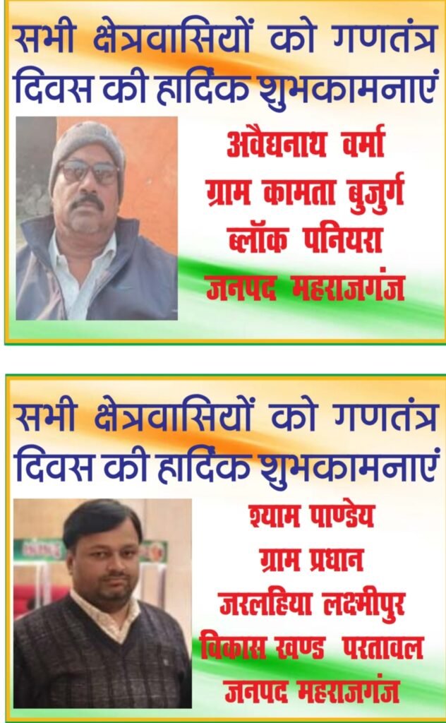 महराजगंज। पनियरा विधानसभा क्षेत्र (319) से पूर्व प्रत्याशी ओम प्रकाश चौरसिया ने 77वें गणतंत्र दिवस के अवसर पर क्षेत्र की जनता सहित समस्त देशवासियों को हार्दिक बधाई एवं शुभकामनाएँ दीं।