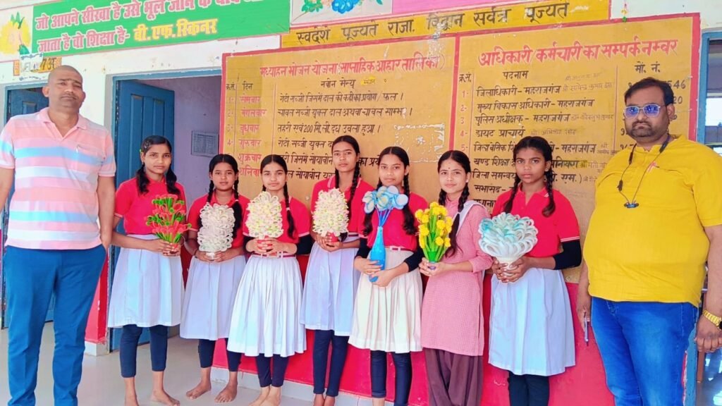 पनियरा/महराजगंज। परिषदीय पूर्व माध्यमिक विद्यालय जड़ार, क्षेत्र पनियरा में कक्षा 6, 7 और 8 की छात्राओं ने गृह विज्ञान विषय के अंतर्गत अपनी रचनात्मक प्रतिभा का उत्कृष्ट प्रदर्शन किया। विद्यालय की अनुदेशक श्रीमती बबिता साहनी के मार्गदर्शन में छात्राओं ने लो कॉस्ट–नो कॉस्ट सामग्री का उपयोग कर क्राफ्ट कला के माध्यम से आकर्षक और सुंदर गुलदस्ते तैयार किए।