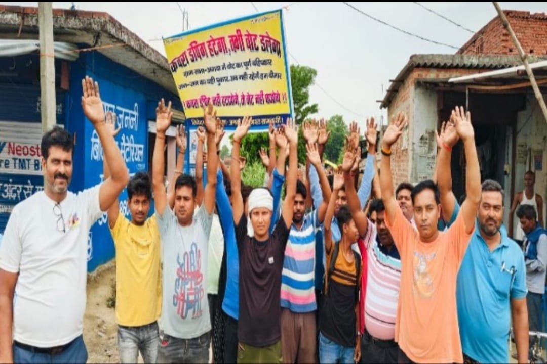 महराजगंज (हर्षोदय टाइम्स)- जनपद महराजगंज के सदर तहसील क्षेत्र अंतर्गत ग्राम सभा अगया में नगरपालिका परिषद महाराजगंज द्वारा निर्मित डंपिंग ग्राउंड के कचरे से उठ रही दुर्गंध के कारण मंगलवार को सड़क पर उतरकर ग्रामीणों ने बैनर पोस्टर लगाकर मतदान का बहिष्कार करने के लिए प्रदर्शन किया।