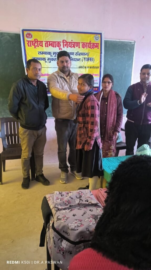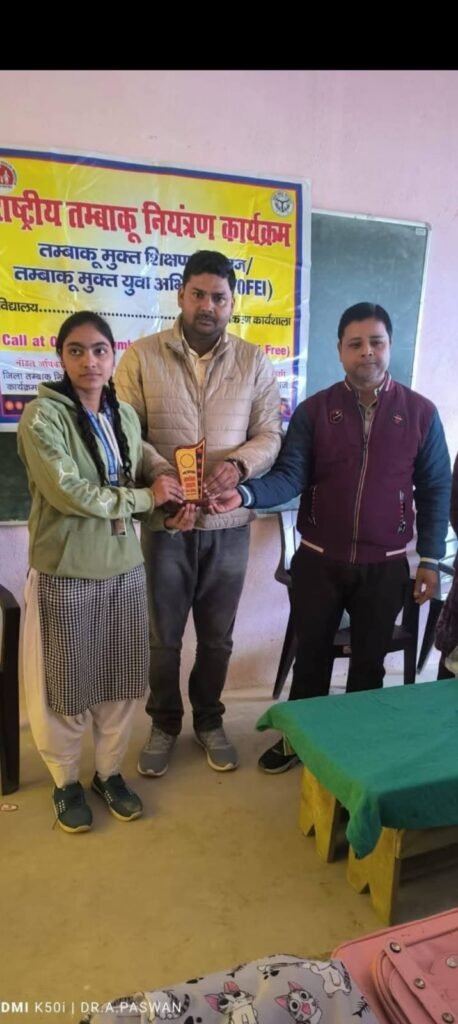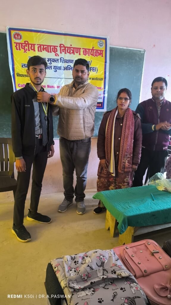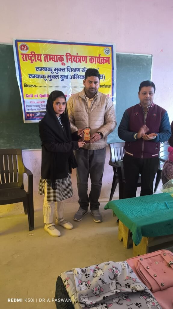 पनियरा/ महाराजगंज : जनपद के विकासखंड पनियरा अंतर्गत ग्राम पंचायत उसका में स्थित हाजी अजहर खान इंटरमीडिएट कॉलेज में आज दिनांक- 30 दिसंबर 2024 को राष्ट्रीय तम्बाकू नियंत्रण कार्यक्रम के तहत जिले के नोडल अधिकारी डॉ. अनुराग पासवान और उनके टीम की उपस्थिति में पोस्टर प्रतियोगिता का आयोजन किया गया एवं उन्होंने तम्बाकू के हानिकारक प्रभाव के बारे में बताते हुए बच्चों को जागरूक किया।